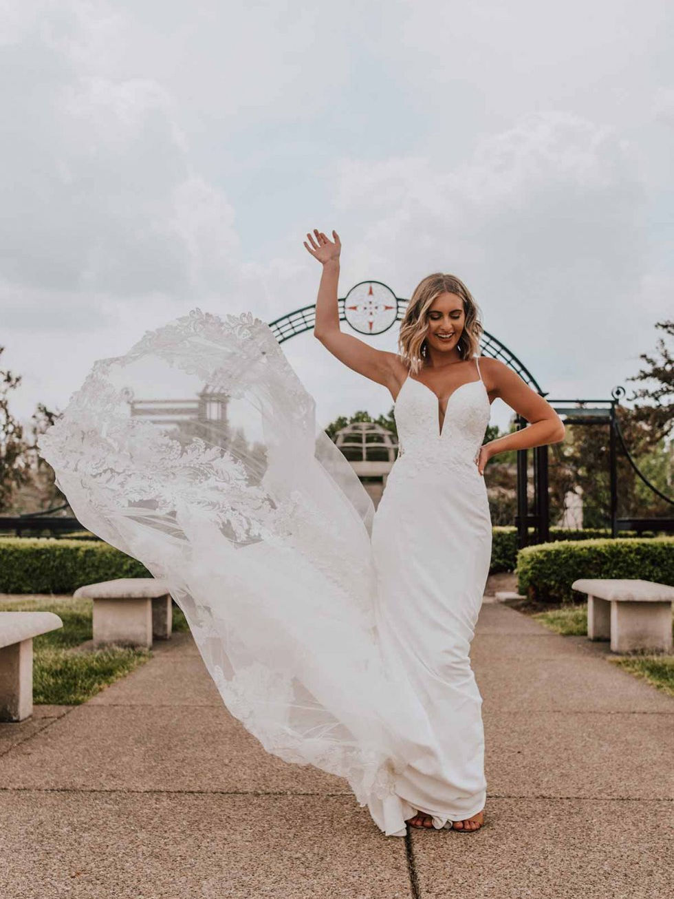 For the classic bridal beauty with a sexy side, Style D3339 brings the timeless glamour. This wedding dress is so versatile; clean lines and a simple silhouette create a gown that can easily be dressed up or down for any celebration of love. The plunging neckline features illusion tulle for all-day sexy support. Delicate beading on the spaghetti straps and along the neckline adds an extra touch of sparkle. Sheer cutouts on the sides of the bodice and through the back add an extra touch of sexiness while showing off the intricacies of the swirling lace. Down the skirt, contour seaming provides incredible fit and comfort. The skirt flares out below the hips, with layers of tulle adding subtle volume for the ultimate walk down the aisle.